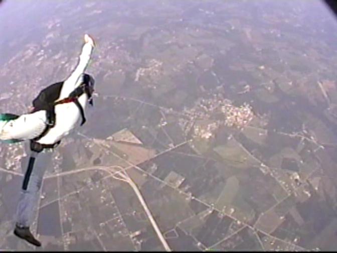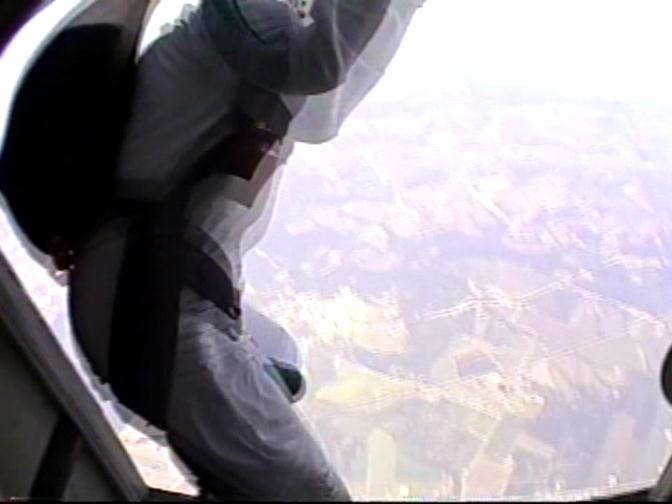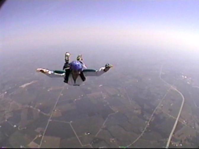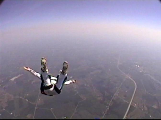 I have some photographs of me skydiving. This was at Greene County, Skydive Ohio. The First, is approaching 12000 ft in the West Wind. The second, one is me clearing the area for pulling my chute. The third, is me squatting in the door of the Super Otter. The Fourth, is a head out exit from the Super Otter The Fifth, is me diving away and down from the plane. The Sixth, is me on my back looking up to see the plane turning away. and Seventh a really nice free fall, level and good situational awareness.